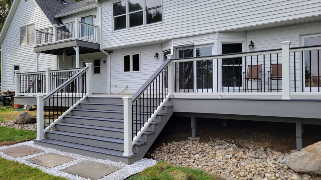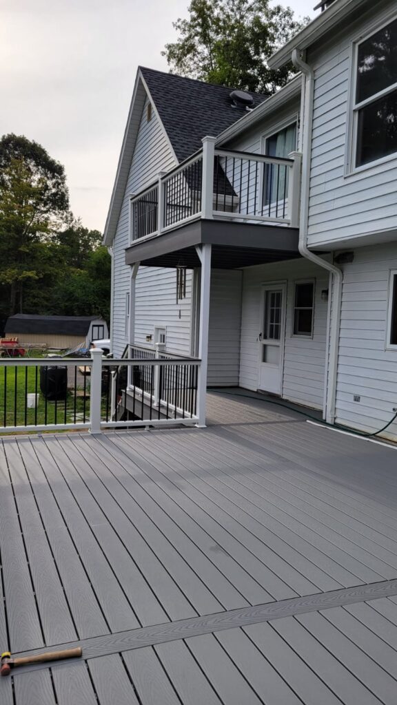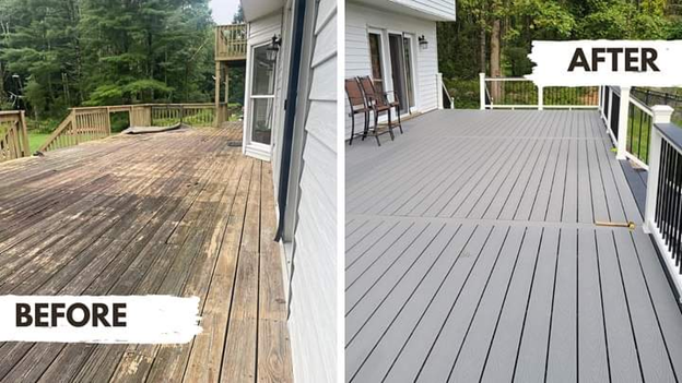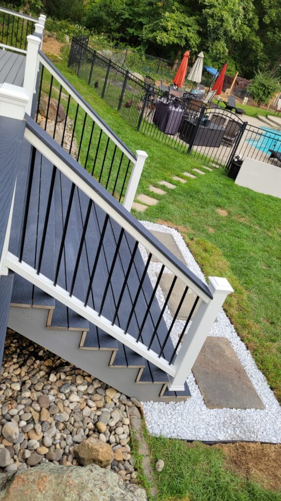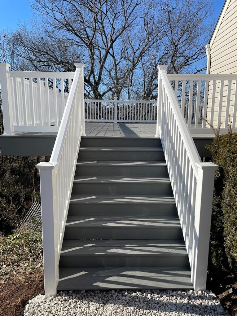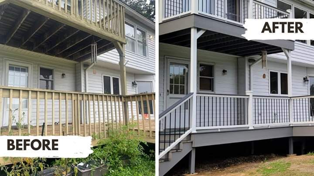 Before and after deck installation-From the stairs to the floor. Our job is completed with details and great workmanship.